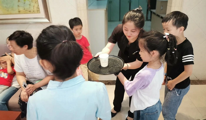 At the end of the activity, every “little character” gave a cup of herbal tea to property management staff, the “big characters”, to show their respect and thanks and their wish to build and protect their home with their families.