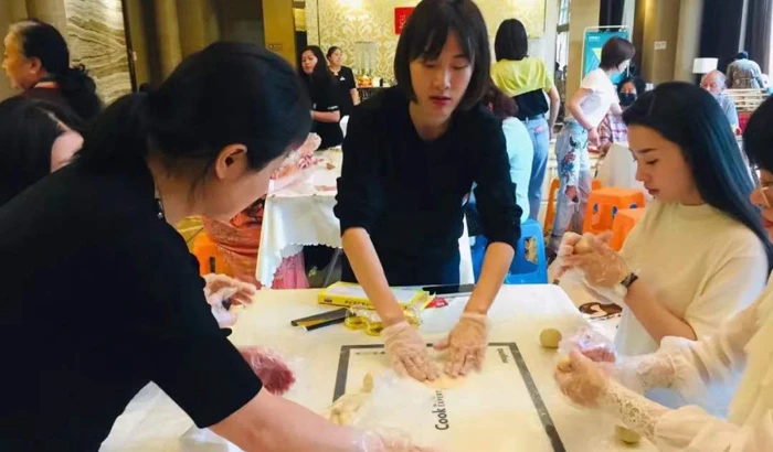 The property management service center of The City Star organized the “Enjoy the Mid-Autumn” activity on the afternoon of September 25th, offering a chance to experience yolk puff pastry making.