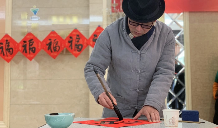 At the site, the calligraphers and calligraphy-loving proprietors arranged paper, ink, brushes and inkstones well and wrote down words of blessings. More and more Spring Festival couplets were produced. Different calligraphy styles including regular script, clerical script and cursive script were demonstrated, attracting interest of people present and winning praise from proprietors on the spot. The new year atmosphere at the whole site was getting gradually stronger as a result of such red “Fu” characters and Spring Festival couplets.