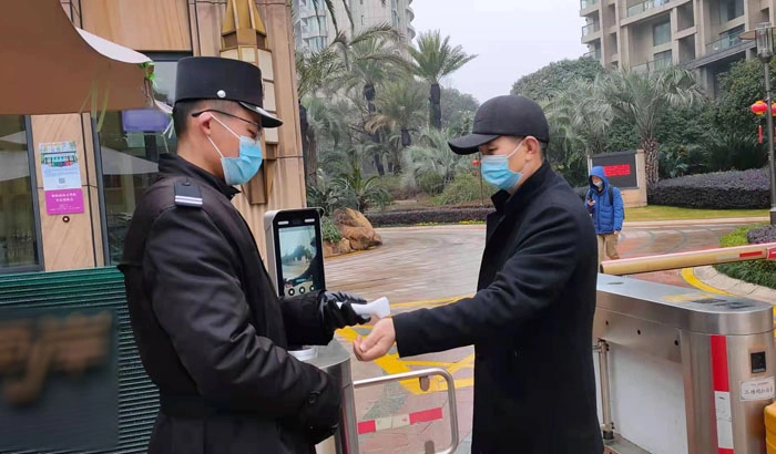 The cleansing worker is busy with the disinfection of every corner of the residential quarter. According to him, only if the disinfection is done thoroughly every day would he feel easy. The highly used elevator buttons are cleaned more frequently. And gate sentries are assigned to measure the body temperature and check the health code of everyone coming in and out to guarantee the security of the residential quarter.