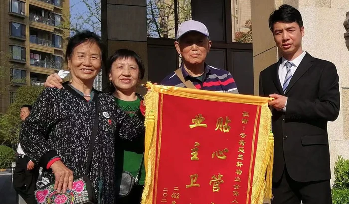The rescued proprietor who’s still receiving treatment in hospital asked his parents in Zhuhai to made a silk banner which read “Life Steward, Life Guard” for property management staff who saved his life. His parents soon flew to Hangzhou. Instead of visiting the proprietor in hospital, they came to Yunheting Zhuxuan directly to send the silk banner and express their gratitude. Wang Xiaohua, the property management assistant, received this old couple and was surprised by what they brought. “We were just doing what we should do. You’re so thoughtful!” said Wang Xiaohua to the old couple.