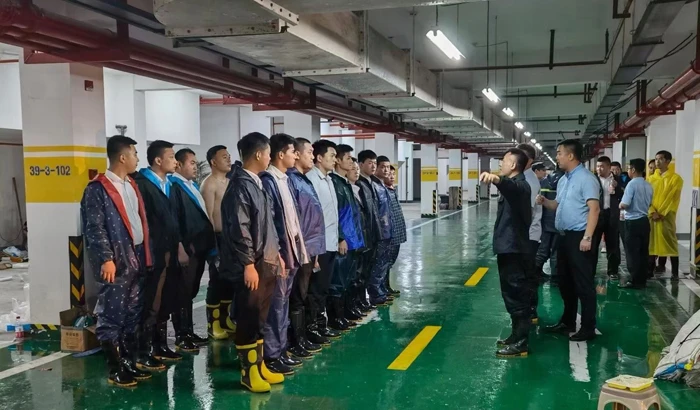 At about 8:40, the water of the peripheral river suddenly made a breach and flowed to the ramp of the basement of Building 38. The service center urgently noticed proprietors to move valuables at the basement upstairs and, at the same time, reported the emergency to the proprietors’ committee, the real estate company, the subdistrict community, and the regional branch of Binjiang Property, all of whom sent assistance to Long Shan Guan Di actively.
