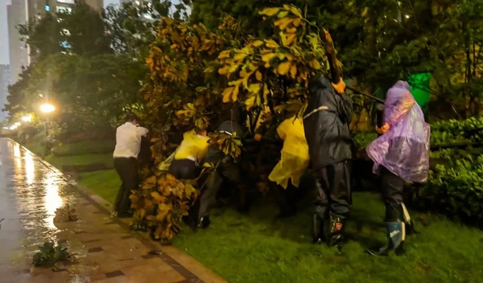 To protect all proprietors, the property management team had been sticking to the front line of typhoon resistance. On July 24th, the 24-hour stand-by system was initiated. In the following 72 hours, under the leadership of director Zhang, the property management team braved the elements and patrolled the whole residential quarter in groups every two hours to inspect equipment, clean ditches, and lift up fallen trees.