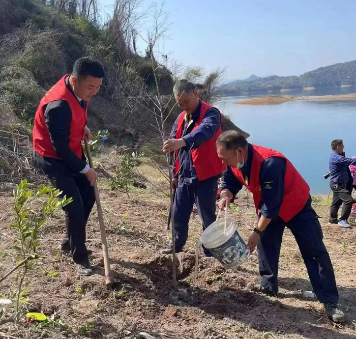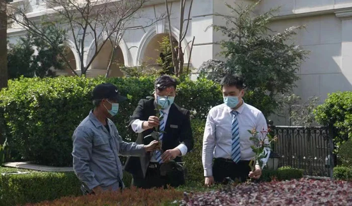 Scraping a hole, putting in the plant, filling and watering are a routine process of tree planting. In Quzhou Chunjiangyue, property management staff planted more than 60 trees on the Arbor Day, including peach trees, cherry trees, kumquat trees, and Camellia azalea trees. The cherry trees and Camellia azalea trees were still in bloom and had white and red flowers on them and there were still fruit hanging on the kumquat trees when they were planted. What the property management staff planted were not only trees but also hope for the future.