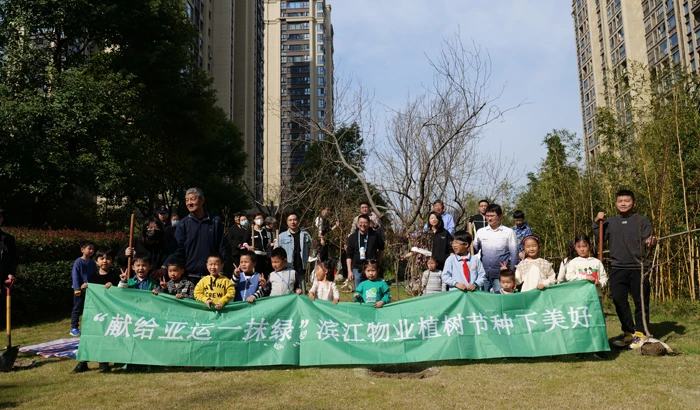 Quzhou Chunjiangyue also answered the “A Trace of Green for Asian Games” call on the same day. With saplings and tools prepared by greening workers beforehand, over 60 saplings of loquat trees, Osmanthus, red tip Photinia, and others. Children were a big part of the tree planting team and were very active yet concentrated despite their young ages. Greening workers guided the whole course and reminded to stamp the soil and water the saplings to the full to help them survive.